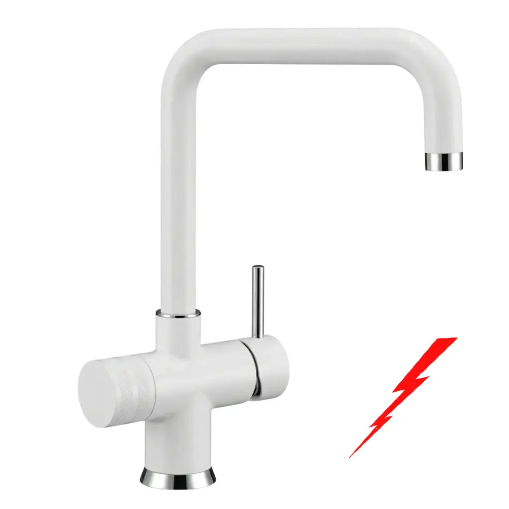Die GM 3-Wege-Niederdruckarmatur ist die ideale Lösung für Küchen mit drucklosem Untertisch-Boiler. Sie kombiniert Warm- und Kaltwasser mit einer separaten Leitung für gefiltertes Trinkwasser – hygienisch getrennt und sicher im Betrieb. Gefertigt aus massivem Messing, 360° schwenkbar und in mehreren Auslaufformen sowie Farben erhältlich.