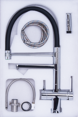 Der Drei-Wege-Wasserhahn Black Poseidon ist die perfekte Kombination aus Design, Komfort und Funktionalität. Er bietet kaltes, warmes und reines Osmosewasser – mit flexibler Schlauchbrause, umschaltbarer Düse und separatem Auslauf für gefiltertes Wasser. Ein Statement für moderne Küchen, die keine Kompromisse eingehen – ästhetisch, praktisch und hygienisch rein.
