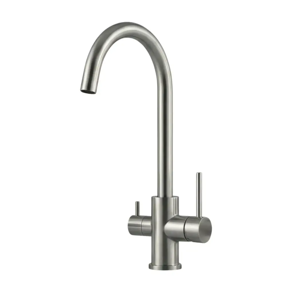 Die VANTO INOX 3-Wege-Armatur verbindet modernes Design mit klarer Funktionalität. Warm- und Kaltwasser sowie gefiltertes Trinkwasser werden über getrennte Leitungen geführt und komfortabel aus einer Armatur entnommen. Gefertigt aus massivem Edelstahl überzeugt VANTO durch hochwertige Verarbeitung, 360° Schwenkbarkeit und flexible Auslaufformen für unterschiedliche Küchensituationen.