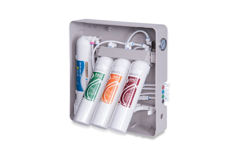 Zwei Vorfilter sorgen dafür, dass grobe Verunreinigungen und störende Geschmacksstoffe wie z.B. Sand-, Schmutz- und Rostpartikel sowie Chemikalien, Mikroorganismen und schlechte Geschmacksgerüche entfernt werden. Die letzte Filterstufe reguliert durch den Aktivkohlefilter den Wassergeschmack und hält es frisch. Der Filterwechsel bei dieser Anlage ist als etwas aufwendiger zu betrachten.