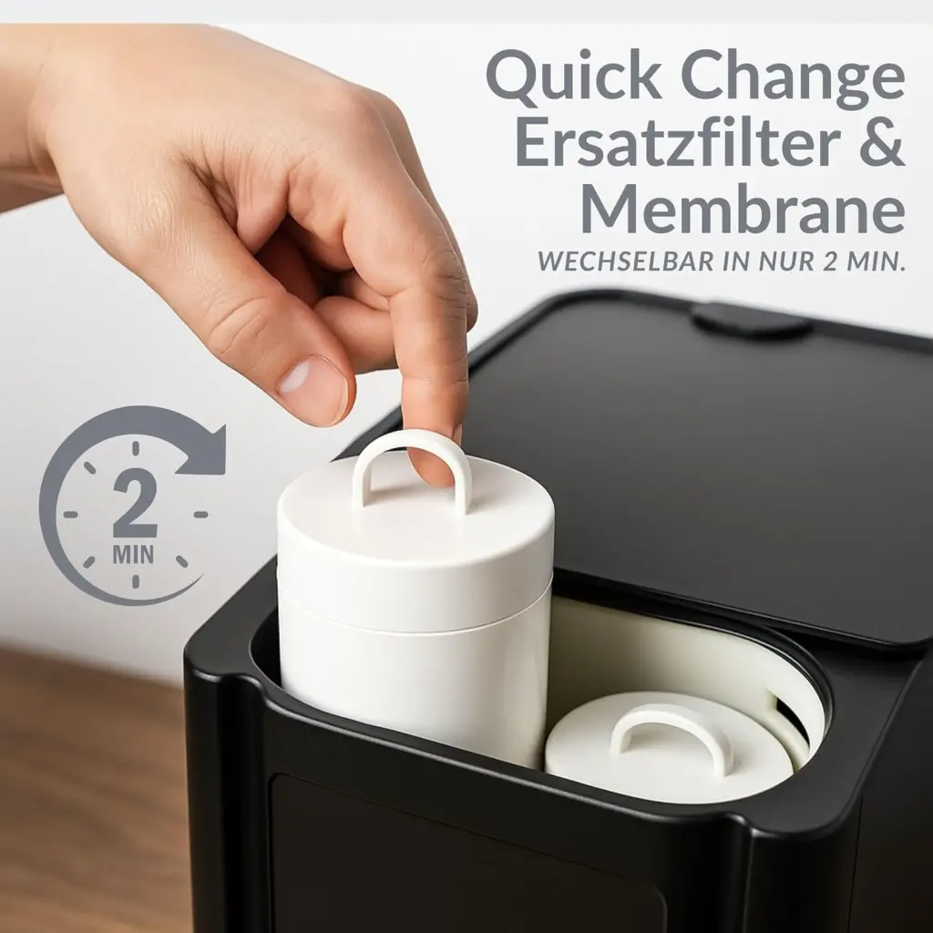 Die SPRUDELUX JUMAN SUPREME kombiniert Umkehrosmose, CO₂-Sprudel, Heiß- und Kaltwasser in einem kompakten Gerät mit Festwasseranschluss. Die integrierte UVC-Desinfektion sorgt jederzeit für höchste Reinheit. Dank Touch-Display, Quick-Change-Filter und modernem Design genießen Sie unbegrenzt frisches, sprudelndes oder heißes Wasser – komfortabel, hygienisch und nachhaltig.