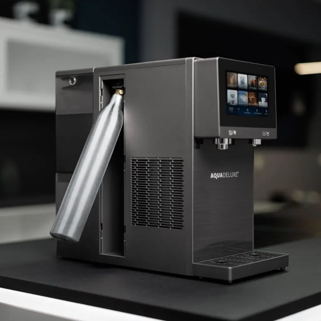 Der SPRUDELUX PRO TOUCH liefert gefiltertes, sprudelndes, heißes oder gekühltes Wasser auf Knopfdruck. Dank moderner 4-Stufen-Umkehrosmose mit UV-Desinfektion genießen Sie hygienisch reines Wasser jederzeit und überall. Mit Festwasseranschluss oder 5-Liter-Tank flexibel nutzbar – das elegante Touchdisplay macht jede Bedienung intuitiv, sicher und effizient.