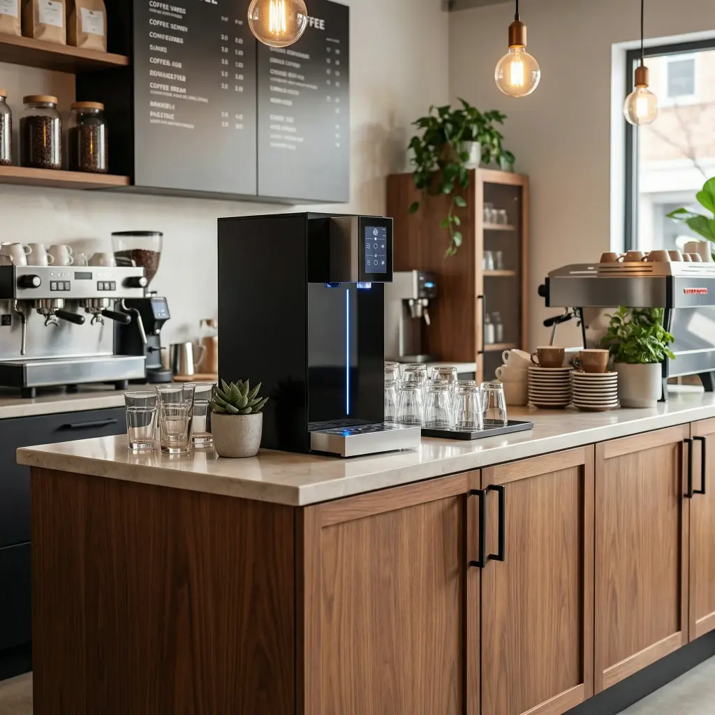 Die SPRINT 40 ist die platzsparende Lösung für Osmose-gefiltertes sprudelndes Wasser im Büro, Café oder zuhause – mit hoher Leistung und stilvollem Design auf nur 21 cm Breite.